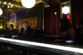 Charles, from an idle taxi, sees simply Michaela looking like she had abandoned their plans and jumps on into the taxi, driving off from the others.